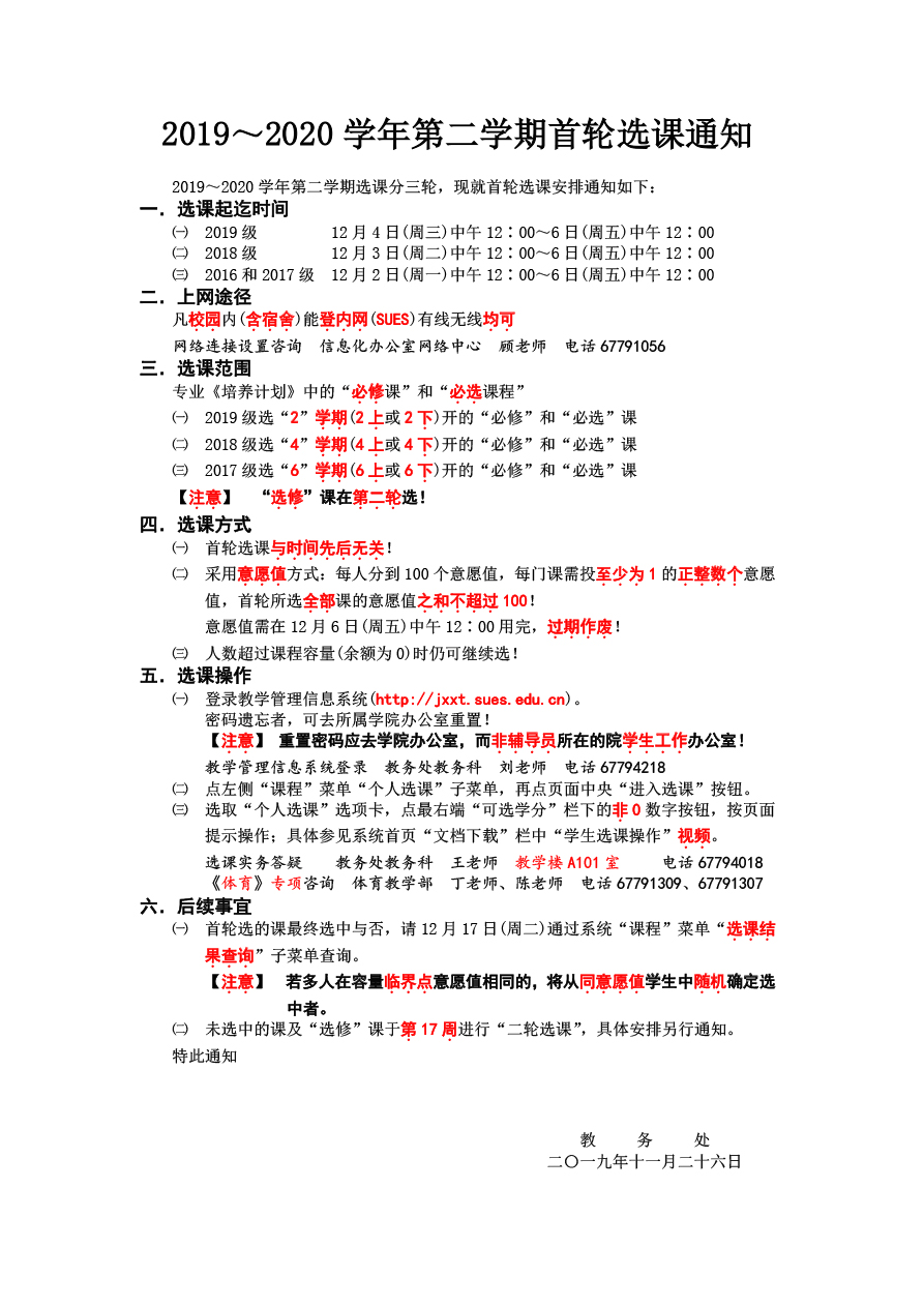 2019~2020学年第二学期首轮选课通知 与 各轮选课友情提示