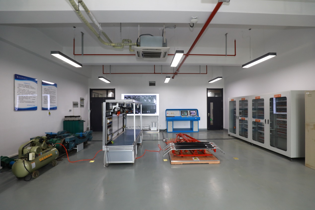 实验室配有动力转向架、电动车门、受电弓、司机操纵台等车辆关键设备,其共同构成车辆电气设备联动系统。另外,该实验室配备有车辆电气控制回路实验系统、电力电子技术实验台等设备。可以开展城市轨道交通结构与原理、液压与气动等专业课程的课内实验,以及城市轨道交通电力牵引与控制、城市轨道交通车门系统等专项实验,以满足本科生在车辆结构组成与控制技术方面的实践教学要求。