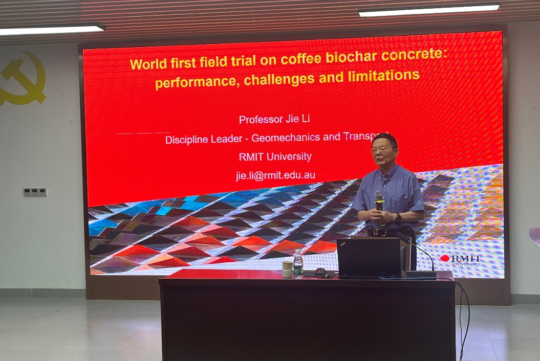 At the meeting, Professor Li Jie first introduced the source of the idea for the coffee grounds project. Australia produces 75 million kilograms of ground coffee waste every year, most of which is eventually landfilled. Every year, the world produces 10 billion kilograms of waste coffee, and the disposal of organic waste poses a challenge to the environment, emitting large amounts of greenhouse gases such as methane and carbon dioxide, leading to climate change. The lecture evaluated the on-site performance of coffee biochar reinforced concrete under actual construction and environmental conditions, and discussed the challenges and limitations of converting coffee waste into clean, mainstream building materials. Professor Li's rich knowledge, unique approach to solving scientific problems, and vivid teaching style have greatly inspired the teachers and students present.