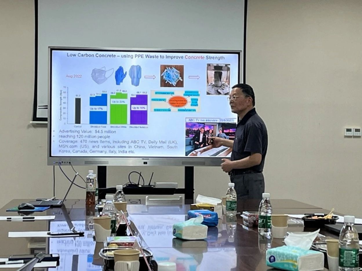 At the meeting, Professor Li Jie first introduced the relevant situation of Royal Melbourne Institute of Technology, and then focused on the research results on the recycling and reuse of personal protective equipment waste in infrastructure construction. Medical waste, including personal protective equipment waste, has caused serious environmental pollution. The RMIT research team led by Professor Li Jie has conducted a series of groundbreaking studies exploring the feasibility of using medical plastics (including masks, gloves, and isolation gowns) for various infrastructure materials such as asphalt, roadbeds, base and sub base layers, as well as concrete. Using chopped mask fibers as additives for hot mix asphalt to improve road performance and achieve waste recycling. The team conducted comprehensive mechanical and microstructural testing, and the results showed that adding specific amounts of medical plastics to these applications can improve the performance of concrete and pavement structures. Professor Li's rich knowledge, unique approach to solving scientific problems, and vivid teaching style have greatly inspired the teachers and students present.