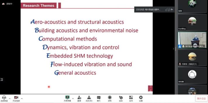 Professor Cheng Li briefly introduced the development process of The Hong Kong Polytechnic University, the discipline construction of mechanical engineering, and some major research topics currently undertaken by the Acoustics and Vibration Research Alliance. He also discussed the challenges and opportunities associated with these research endeavors. Professor Cheng noted that since the founding of the university 85 years ago, the Department of Mechanical Engineering, as one of the founding departments of The Hong Kong Polytechnic University, has been actively engaged in both basic and applied research. They have been driving the development of cutting-edge knowledge, providing continuous scientific research services to Hong Kong, the surrounding regions, and beyond. The research activities of the Department of Mechanical Engineering are primarily focused on four main areas, affiliated with three research centers and a university research alliance. As one of its integral components, the Acoustics and Vibration Research Alliance consistently conducts extensive research projects, including vibration and noise control, fluid-structure interaction, structural health monitoring, and studies in acoustics, elasticity, metamaterials, and structures. Professor Cheng Li's vivid and informative presentation style greatly stimulated everyone's research interests.