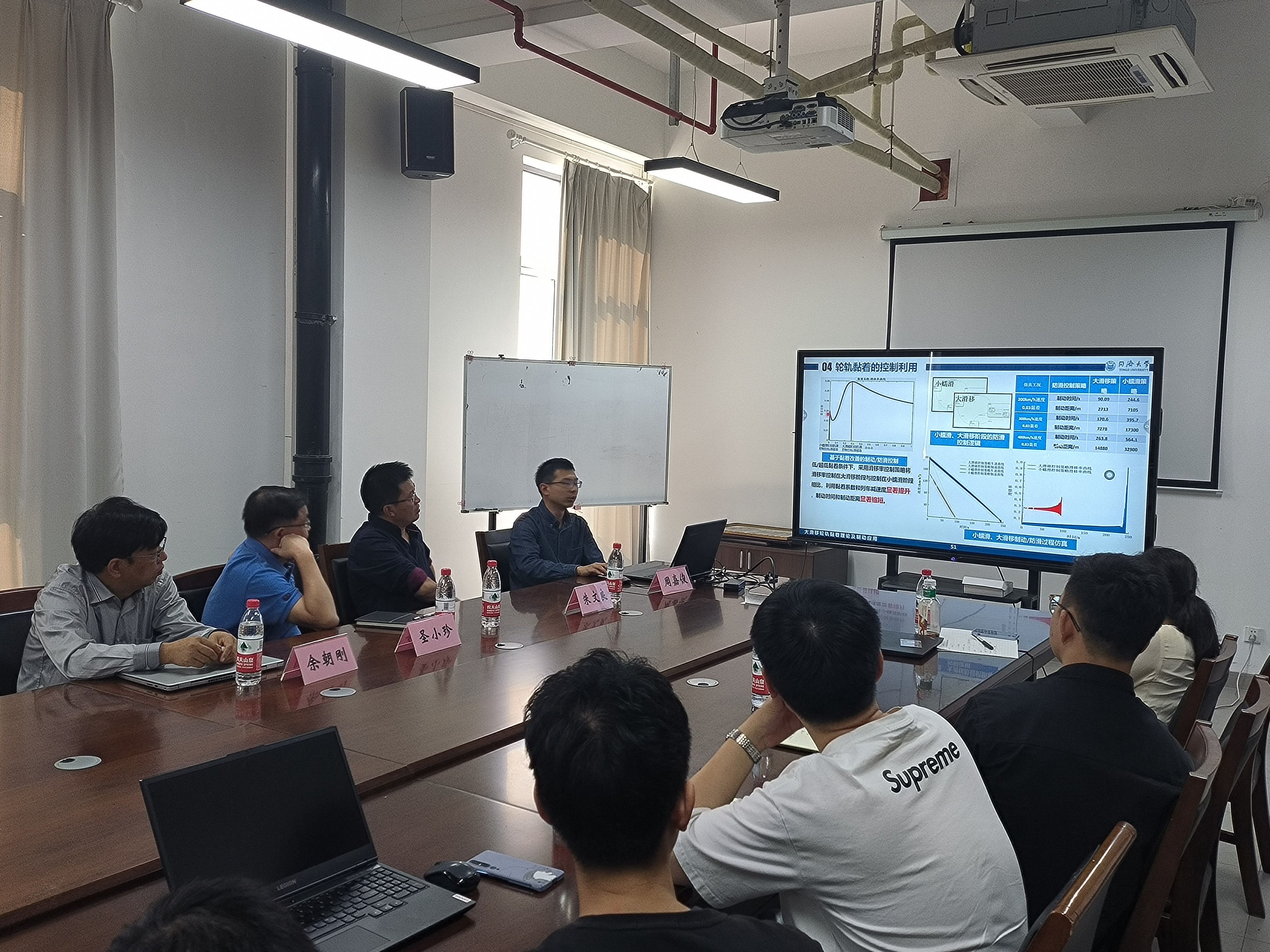 会议分为两个环节,首先由周嘉俊博士为大家做了相关学术的报告讲解,他通过绕行式轮轨黏着试验台以及高速轮轨黏着模拟试验台,发现并验证了水介质条件下的轮轨黏着改善机理。该研究成果突破现有黏着利用的思维框架,由黏着被动利用转为黏着的主动改善控制,对列车制动性能提升、防滑判据的优化设计、车辆运营安全保障具有重大意义。在历经两个多小时的报告中,周博士旁征博引、娓娓道来,详细介绍了自己的研究成果,采用基于混合润滑轮斩接触理论,构建考虑固液耦合传热的轮轨接触模型,建立轨面第三介质损失量与车轮大滑移作用的内在联系,定量描述轮轨黏着及其变化规律,丰富并拓展了现有轮轨黏着理论。然后是周嘉俊博士与各位老师、研究生的学术探讨环节,在与同学们和各位老师的探讨研究中,针对大家提出的问题,周博士都做了详细的解释。