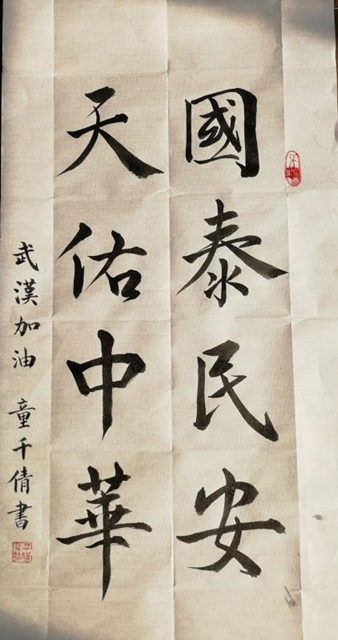 在此,创作书画作品一幅,为一线的你们加油,为武汉加油,愿你们平安归来;也愿国泰民安,天佑中华!相信冬去春来时,我们会脱下口罩,共赏樱花!相信灾难退去时,中华民族会更加强大,“千磨万击还坚劲,任尔东西南北风”!