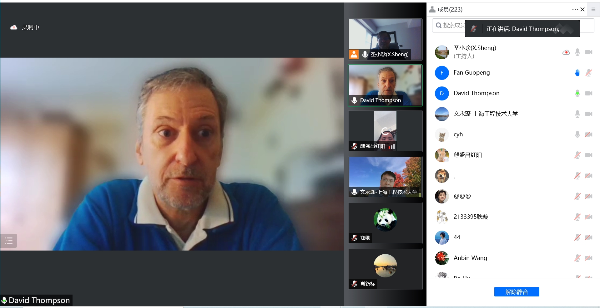 5月25日下午,3044永利集团邀请公司上海市高端外国计划项目专家,英国南安普敦大学声学与振动研究所(Institute of Sound and Vibration, ISVR) David Thompson教授为公司的师生作了一场题为“列车气动噪声:ISVR所开展的研究”的学术报告。本次报告采取线上会议的形式,报告会由圣小珍教授主持。