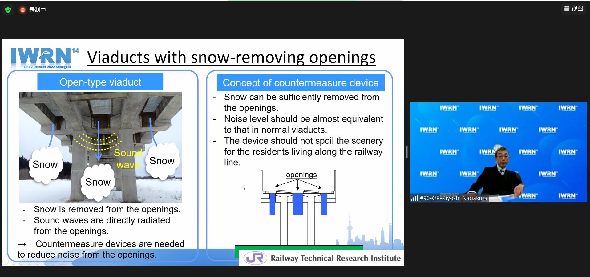 本次大会包括高速铁路和空气动力学噪声、轮轨噪声、减振弹性轨道等11个主题,与会代表以口头报告或海报的形式进行展示与交流。其中,长江学者、同济大学上海地面交通工具风洞中心主任杨志刚教授在《Research advances on aerodynamic noise of high-speed trains》的报告中从预测、机理分析和噪声控制方法等方面综述了高速列车气动噪声的研究进展;国家级人才、青岛科而泰环境控制技术有限公司董事长、隔而固(青岛)振动控制有限公司总经理尹学军教授作了题为《Study on the wide-frequency tuned mass damper inhibiting rail corrugation and noise in curve section of floating slab track》的报告,他指出WTMD的使用能够有效抑制钢轨振动和钢轨波磨的发展,且可以降低轨旁噪声和车内噪声;IWRN国际委员、英国南安普敦大学声学与振动研究所David Thompson教授发表了题为《Improved methods for the separation of track and wheel noise components during a train pass-by》的演讲,提出了从实测轮轨噪声中采用试验技术分离车轮和轨道噪声的改进方法;IWRN国际委员、日本铁道技术研究院Kiyoshi Nagakura教授作了题为《Study on devices to reduce pass-by noise along viaducts with snow-removing openings》的报告,他采用比例模型分别进行了实验室测试和线路测试,分析了多种清除雪障的声辐射特性。