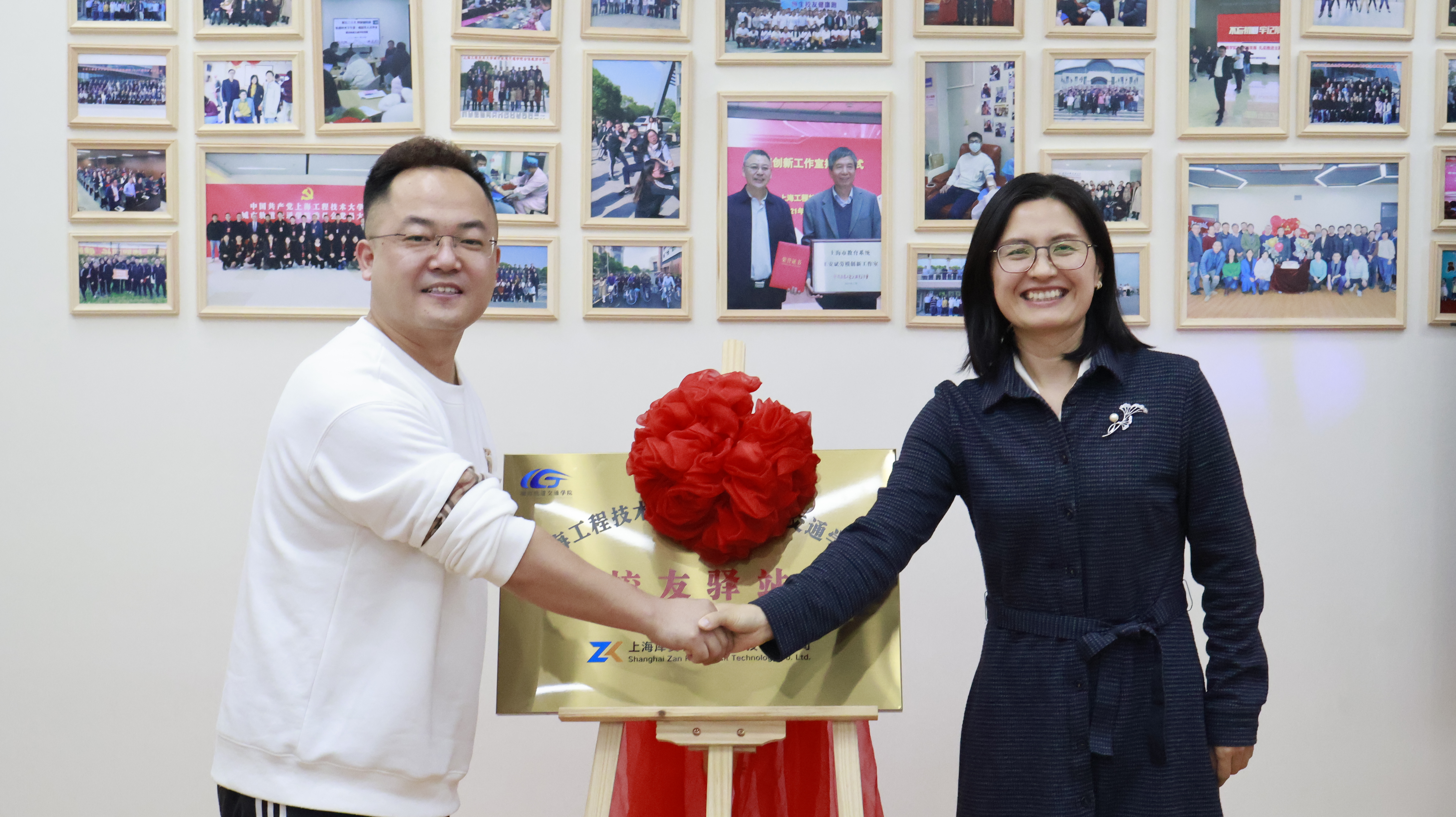 公司党委书记万慧琳与上海库赞轨道交通科技有限公司总经理张国富员工一同进行“员工驿站”的揭牌仪式,“员工驿站”的建成进一步加强员工文化建设,促进员工组织之间、员工之间的联系和交流。