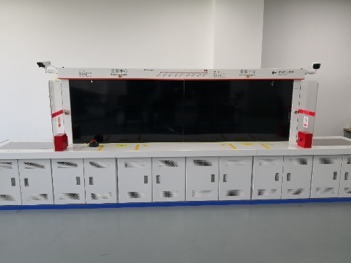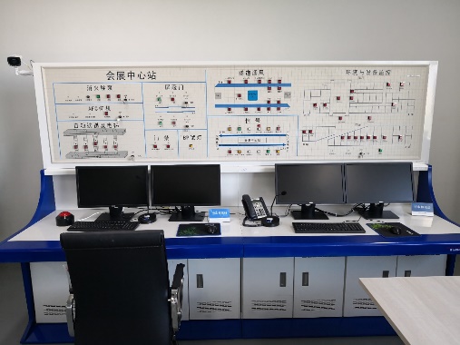 现配备行车值班员实训系统,可用于进行职业技能竞赛、岗位能力评估以及日常的实训演练。该系统以基于无线通信技术的CBTC信号系统和综合监控系统为仿真原型,包含1个车辆段、9个车站,其中含4个地下站、5个高架站(共划分为3个联锁区),线路长度12.4KM,配备行值操作台、行调台、站台门、实物道岔转辙机、裁判长终端等设备。