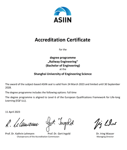 l 2023年,通过德国ASIIN国际工程教育专业认证。